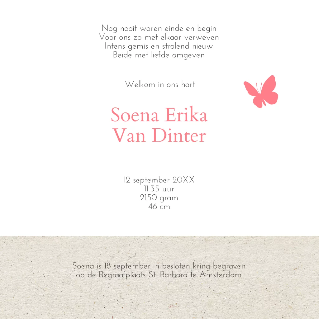 rouwkaartje voor tweeling waarvan een kindje is overleden