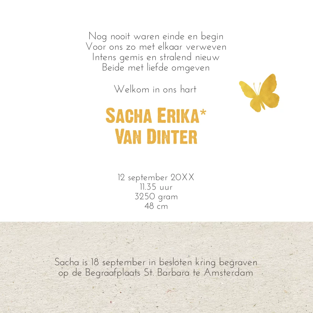 rouwkaartje voor tweeling waarvan een kindje is overleden