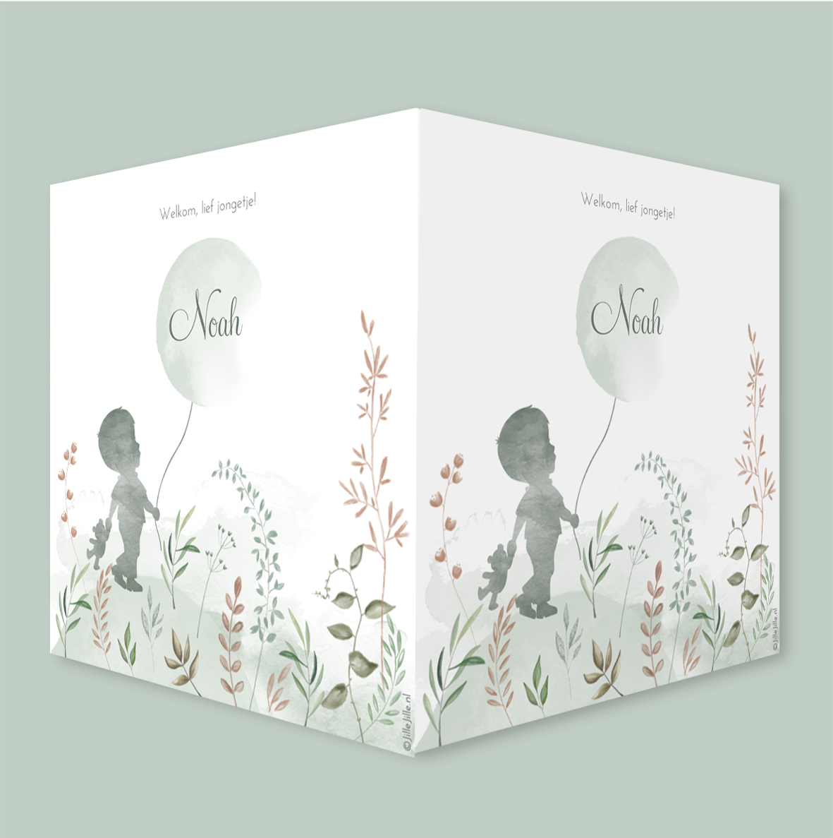 Kondig de geboorte van jullie zoontje aan met dit mooie geboortebord van 50x50cm! Dit lieve 'makelaarsbord' past bij het geboortekaartje met waterverf silhouetten voor een jongetje in een veld met planten en takjes. De kleuren kun je naar wens aanpassen. Je maakt één zijde op in de editor en dit wordt vervolgens op twee zijdes gedrukt.