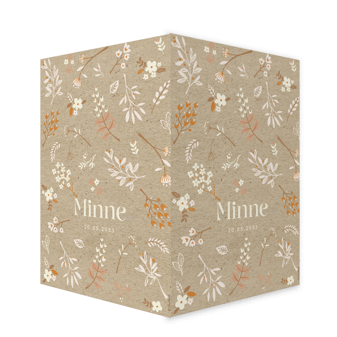 Raambord dubbel met kraft achtergrond en bloemen patroon
