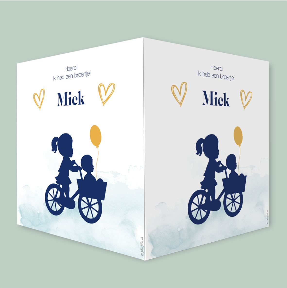 Dit dubbel vierkant raambord met de silhouetten van een jongetje met z'n grote broer op de fiets met waterverf kun je zelf bewerken.
