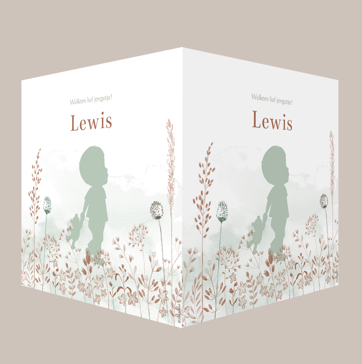 Kondig de geboorte van jullie zoontje aan met dit mooie geboortebord van 50x50cm! Dit lieve 'makelaarsbord' past bij het geboortekaartje met waterverf silhouetten voor een jongetje in een veld met bloemen. De kleuren kun je naar wens aanpassen. Je maakt één zijde op in de editor en dit wordt vervolgens op twee zijdes gedrukt.