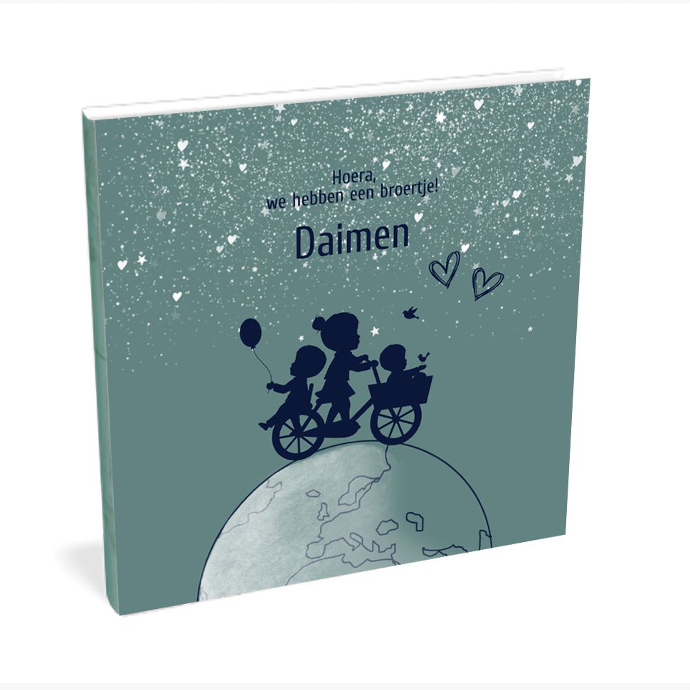 Mooi gastenboek met een silhouet van drie kindjes op de fiets passend bij je geboortekaartje. Verander zelf eenvoudig het ontwerp naar je eigen idee of vraag onze hulp.