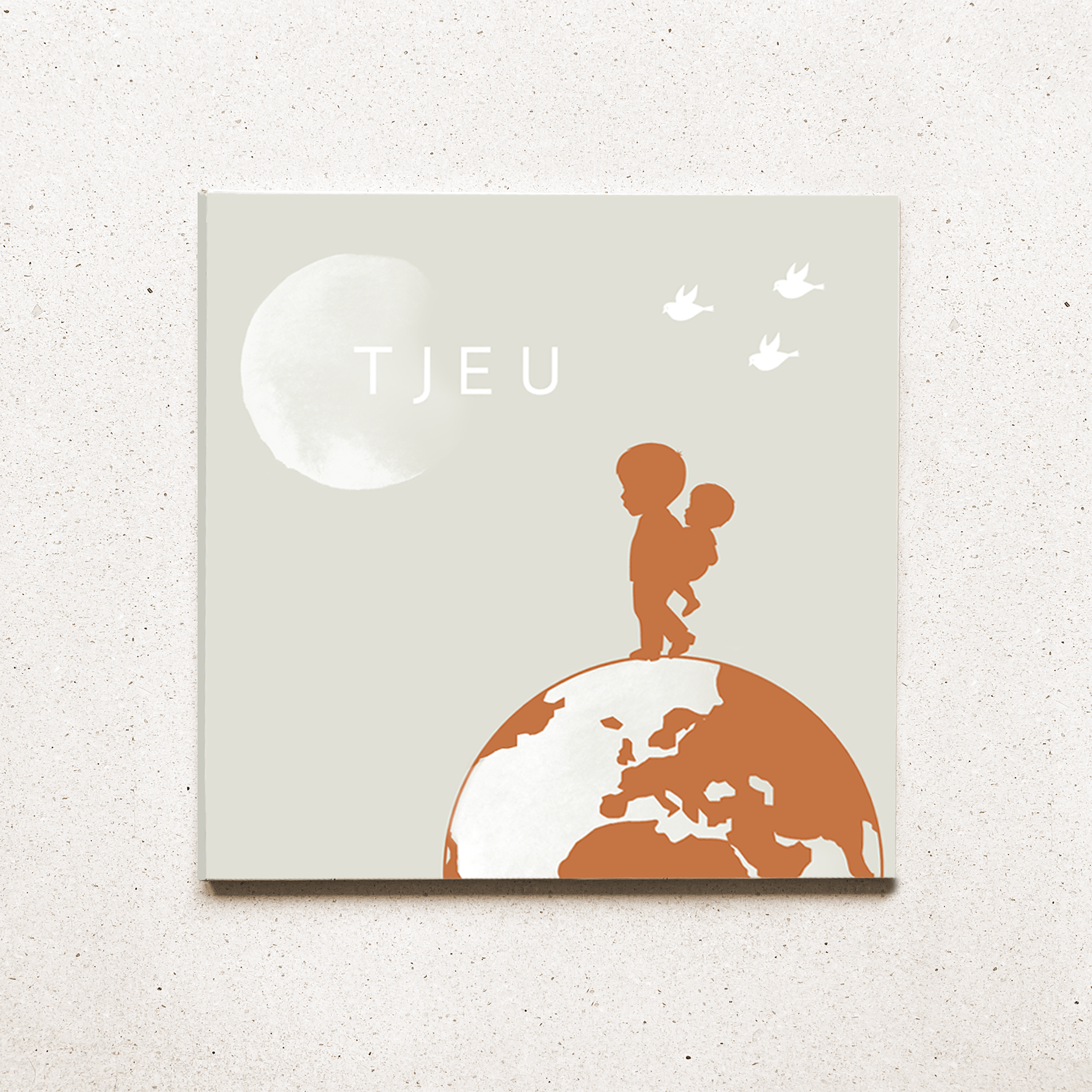 Mooi gastenboek met een silhouet van twee broertjes op de wereldbol. Dit gastenboek passend bij je geboortekaartje kun je zelf bewerken door een passend silhouet te kiezen voor een zusje of een grotere zus. Verander zelf eenvoudig het ontwerp naar je eigen idee of vraag onze hulp.