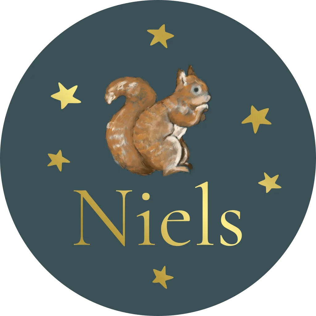 Sluitsticker geschilderde eekhoorn sterren naam foliedruk