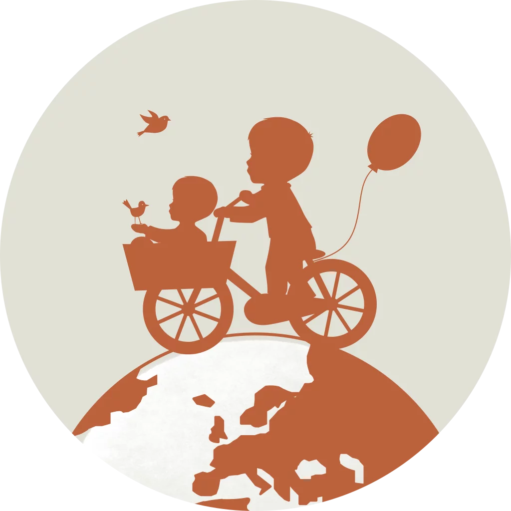 Leuke sluitsticker met een silhouet van een jongetje op een fiets met zijn grote broer. Verander zelf eenvoudig de kleuren.