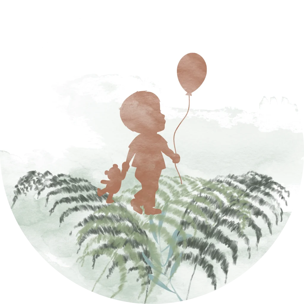 Leuke sluitsticker met waterverf silhouet van een jongetje in waterverf met varens