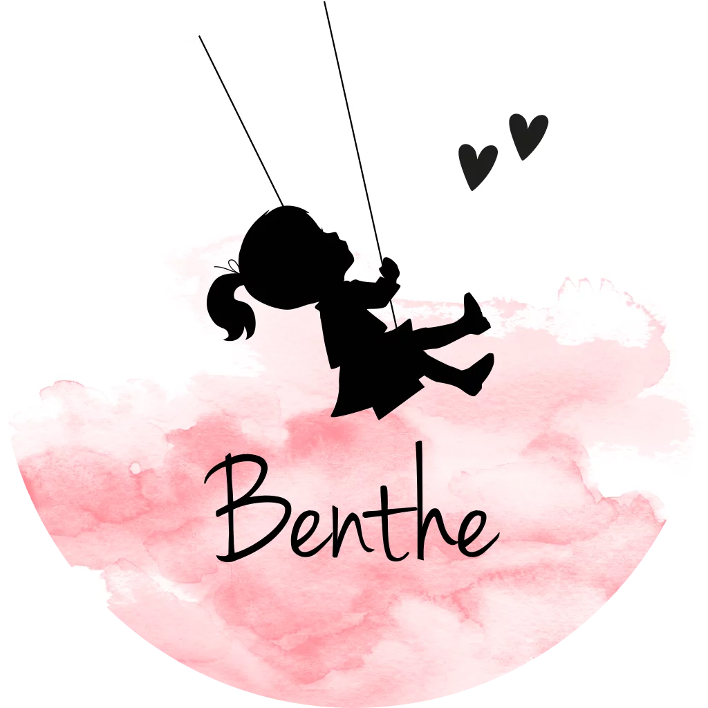 Sluitsticker met het silhouet van een meisje op een schommel op een achtergrond van waterverf.