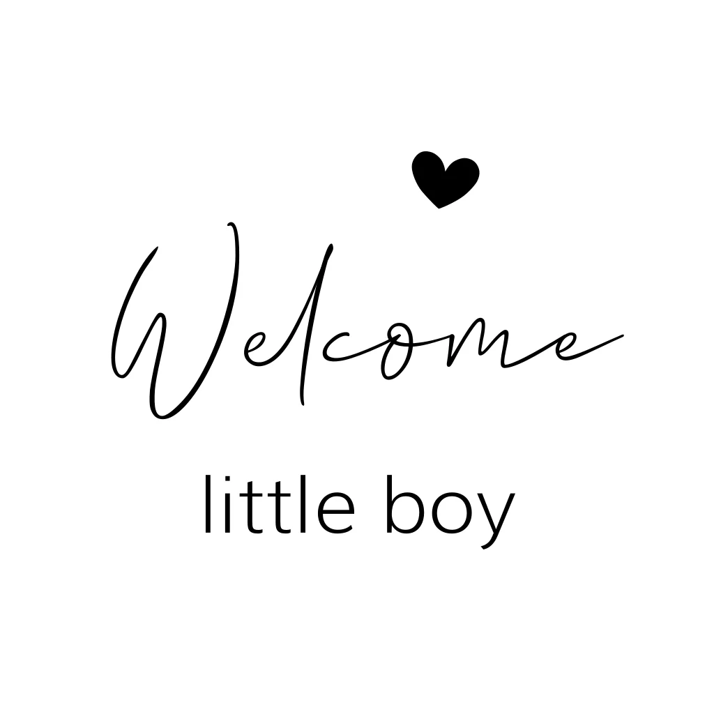 Sluitsticker met de tekst 'welcome little boy' De teksten en kleuren van deze sluitzegel kun je zelf aanpassen.