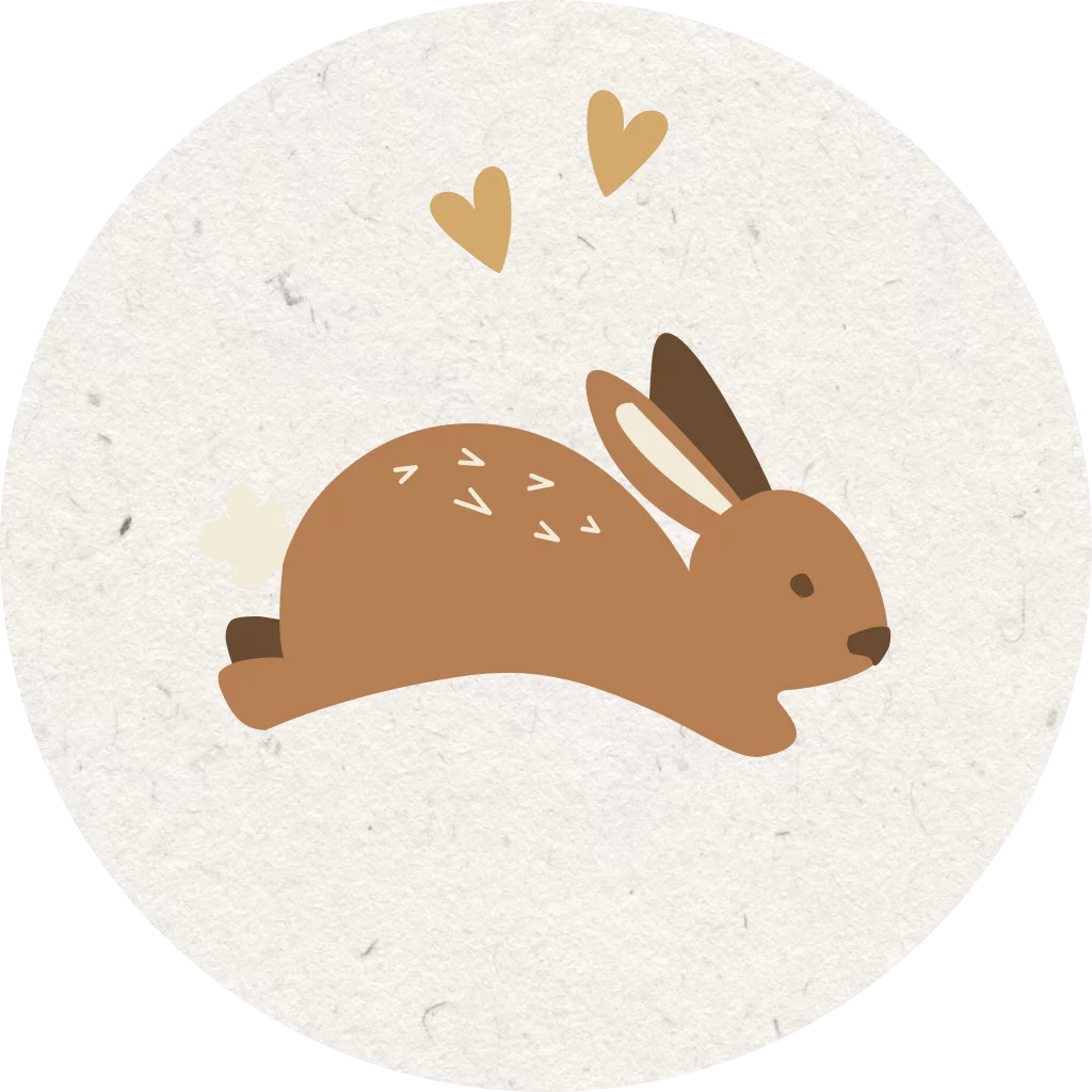 Leuke sluitsticker met een illustratie van een schattig springend konijntje. Deze sticker kun je zelf aanpassen door een andere afbeelding te kiezen uit onze beeldbank.