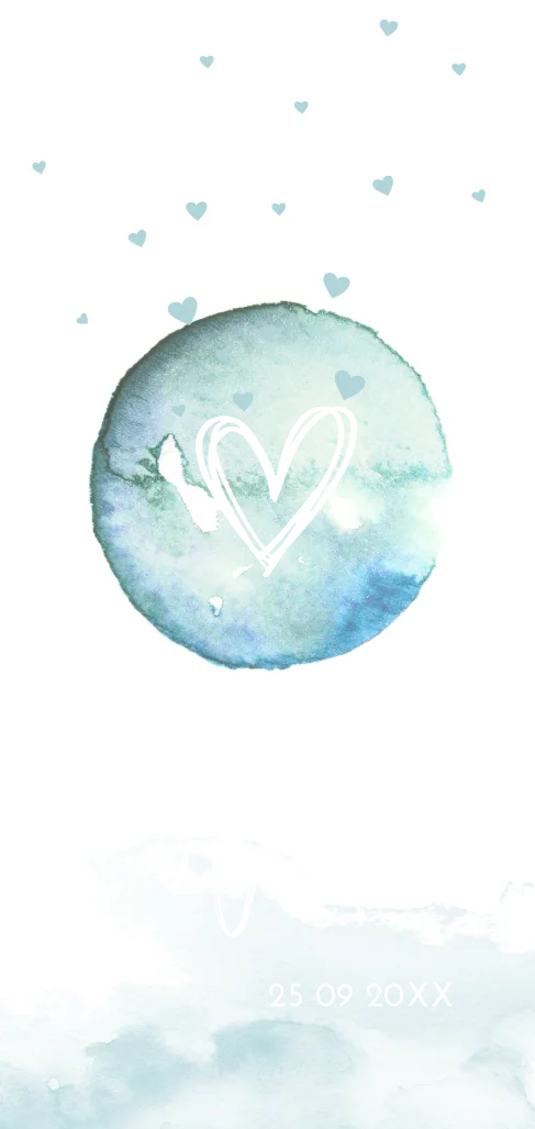 Hippe staande geboortekaart met de naam en hartjes in goudfolie, gecombineerd met mooi waterverf.