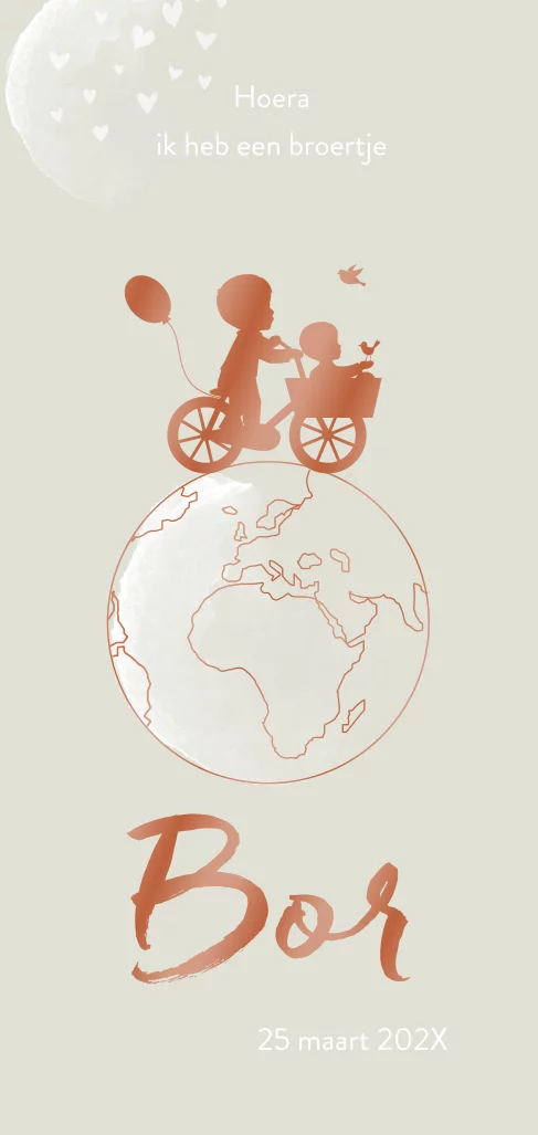 Hoogglans folie-geboortekaartje silhouet en wereldbol