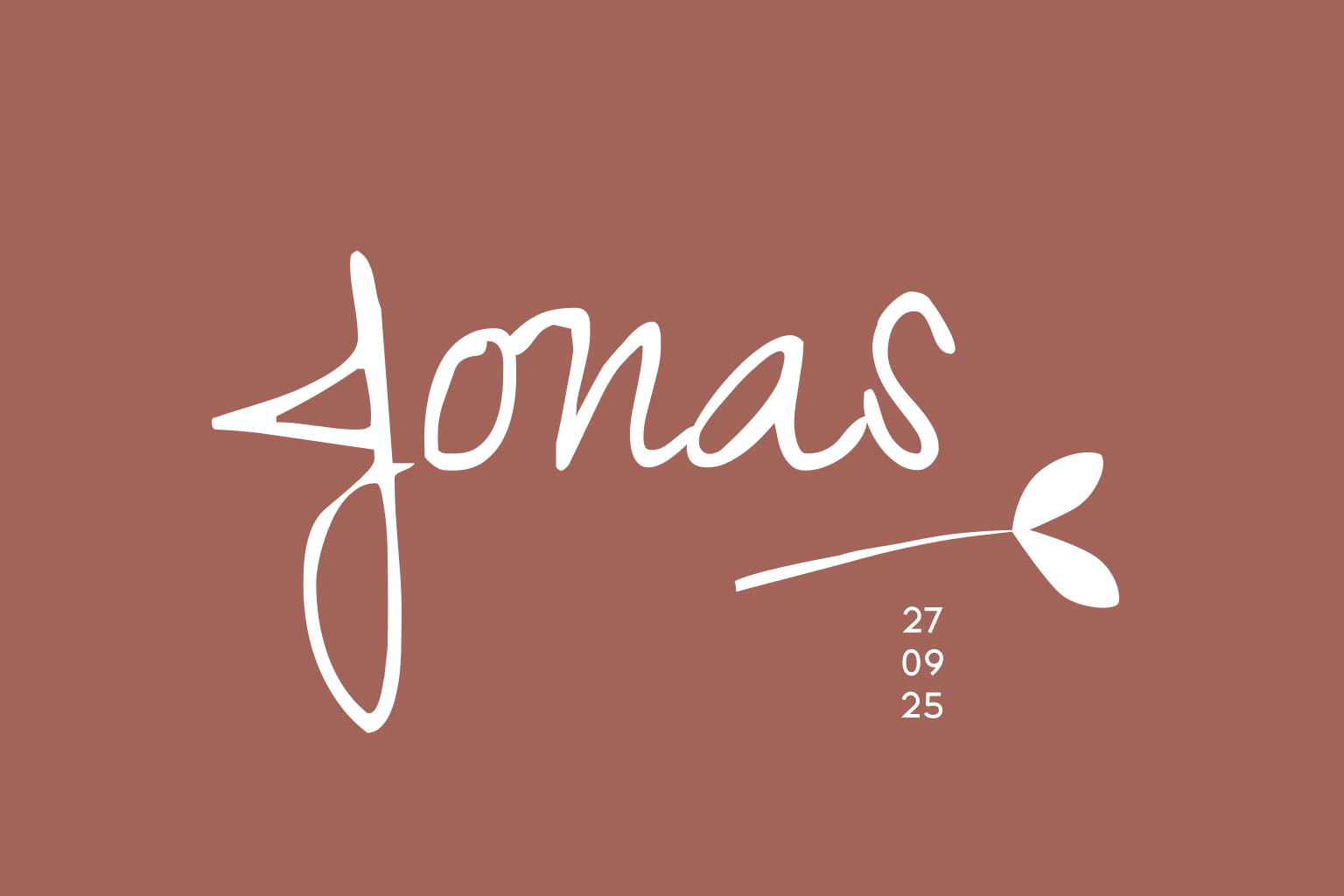 Mooie moderne geboortekaart met gouden foliedruk op beide zijden in de herfstkleur roestbruin op de achtergrond. Pas zelf eenvoudig de kleuren en teksten aan.