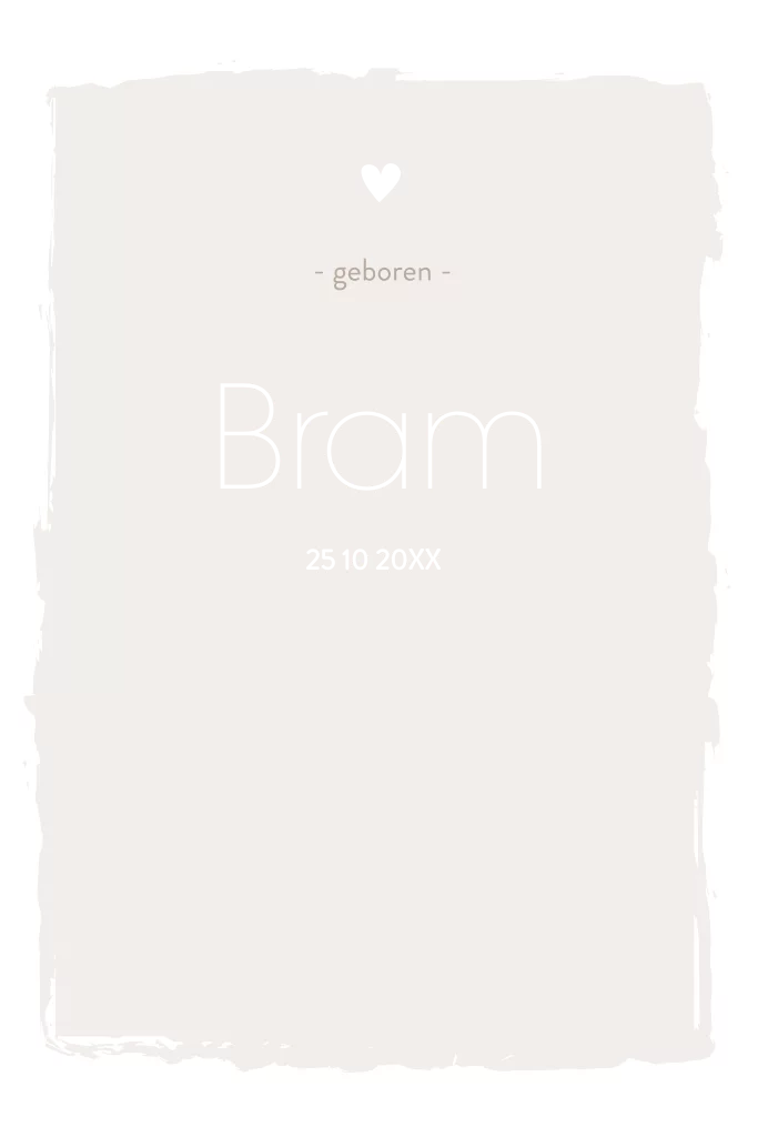 Mooie moderne eenvoudige geboortekaart met foliedruk op een achtergrond van zacht beige en een rafelig wit kadertje. Pas zelf simpel de kleuren en teksten aan.