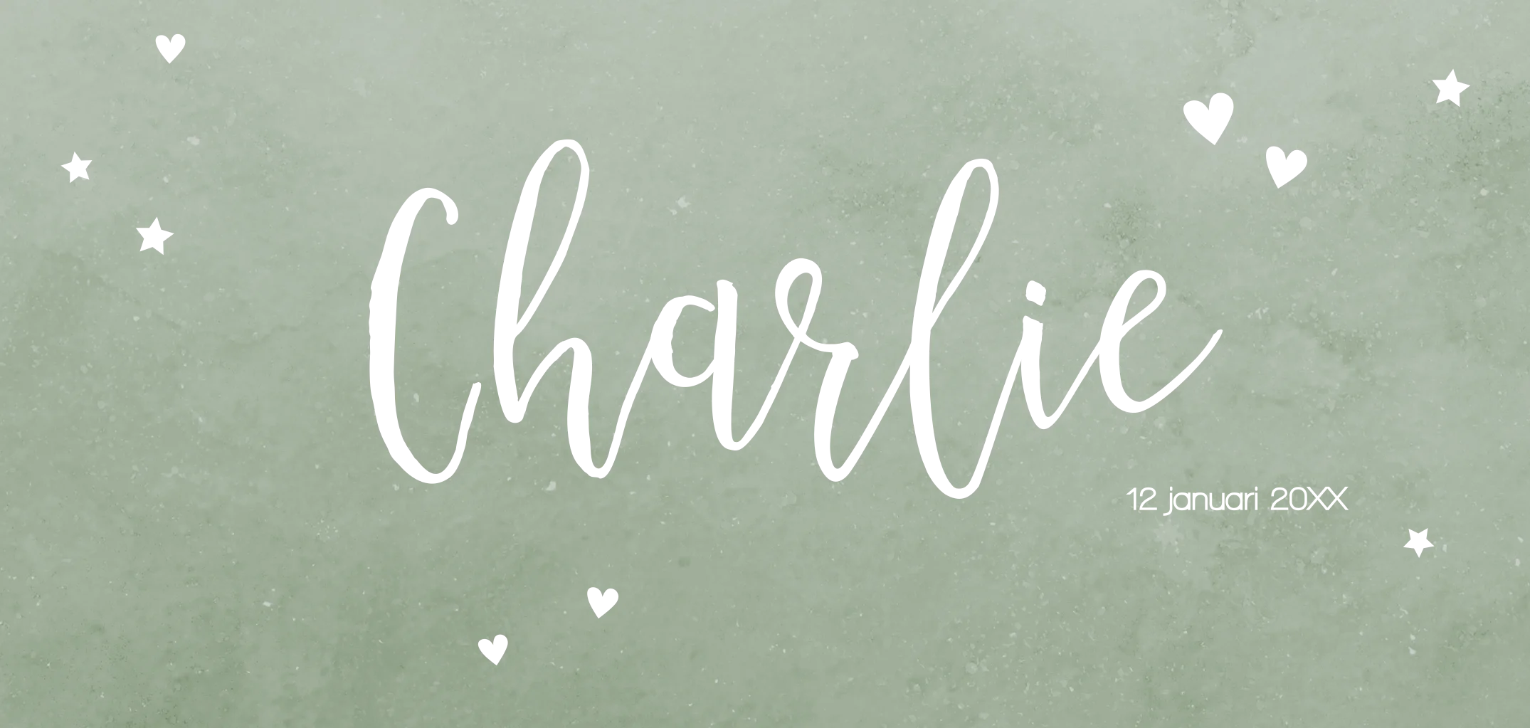 Goudfolie geboortekaartje met naam groot in foliedruk. Je kunt deze elementen in de kaart ook omzetten naar zilverfolie of rosé folie. Wil je liever een ander formaat of zonder folie laat het ons weten!