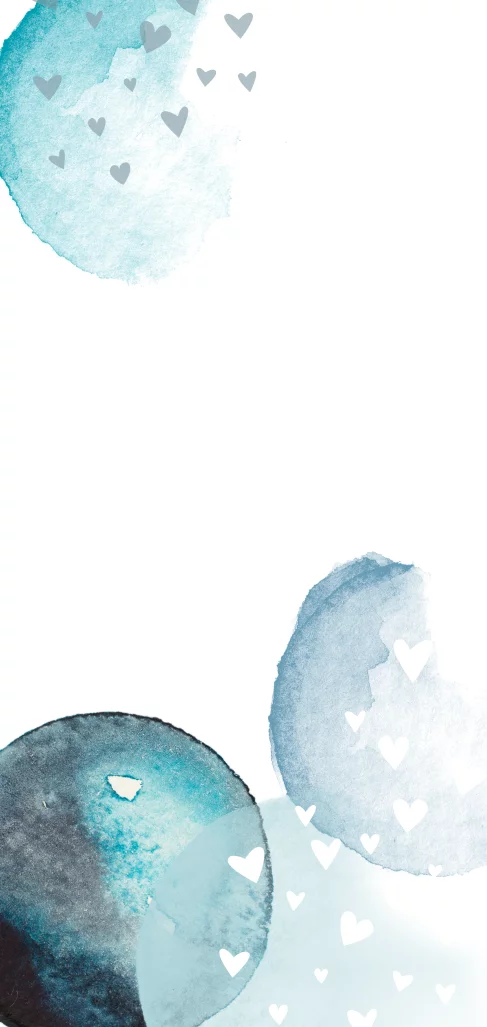 Zilverfolie geboortekaart met waterverf bollen en hartjes. De naam in staat in Zilverfolie, maar je kunt ook kiezen voor goudfolie of koperfolie.