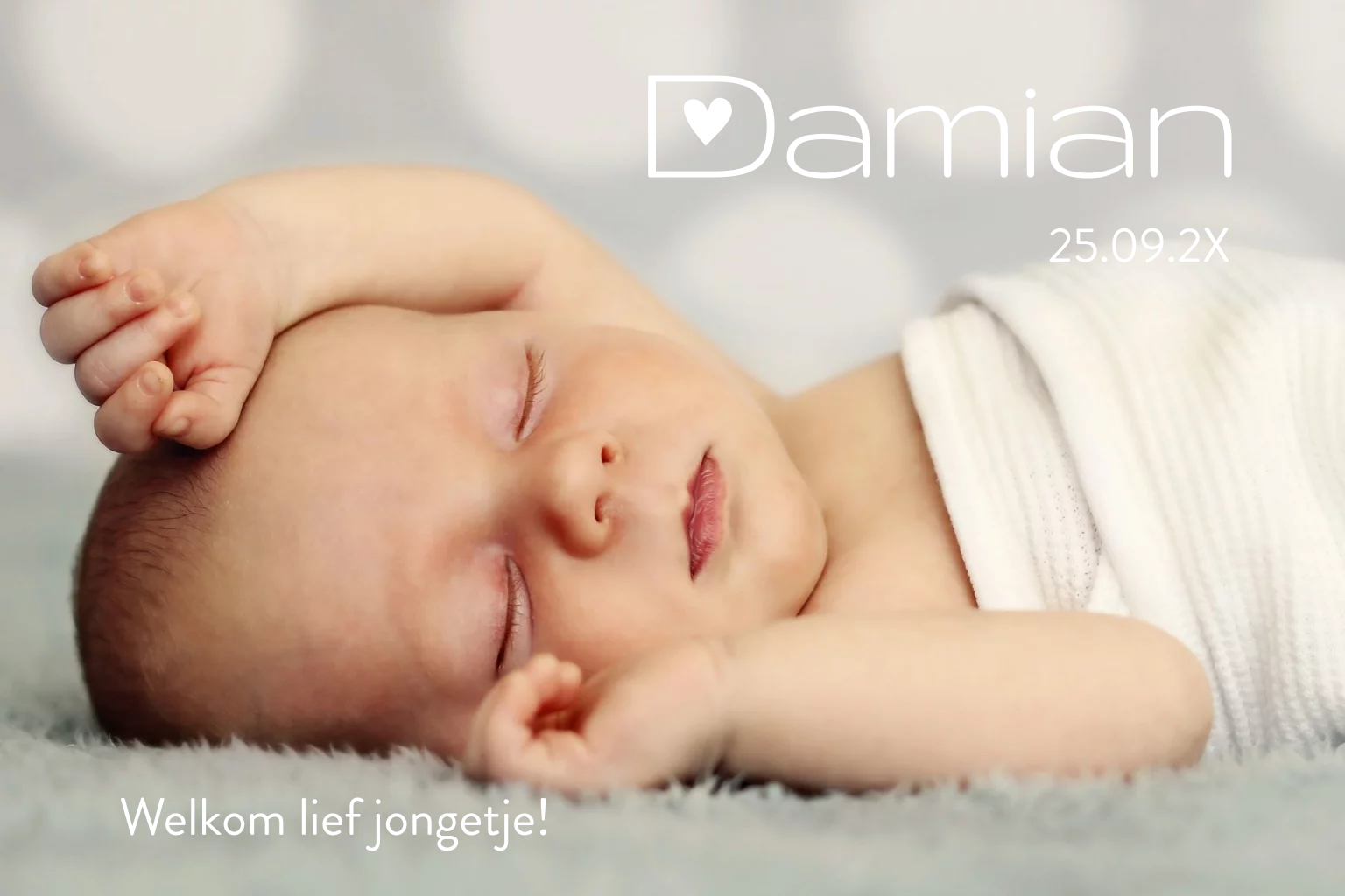 Prachtige foto geboortekaart met de naam in echt goudfolie. Gebruik de mooiste foto voor je kindje en pas de kaart naar wens aan.