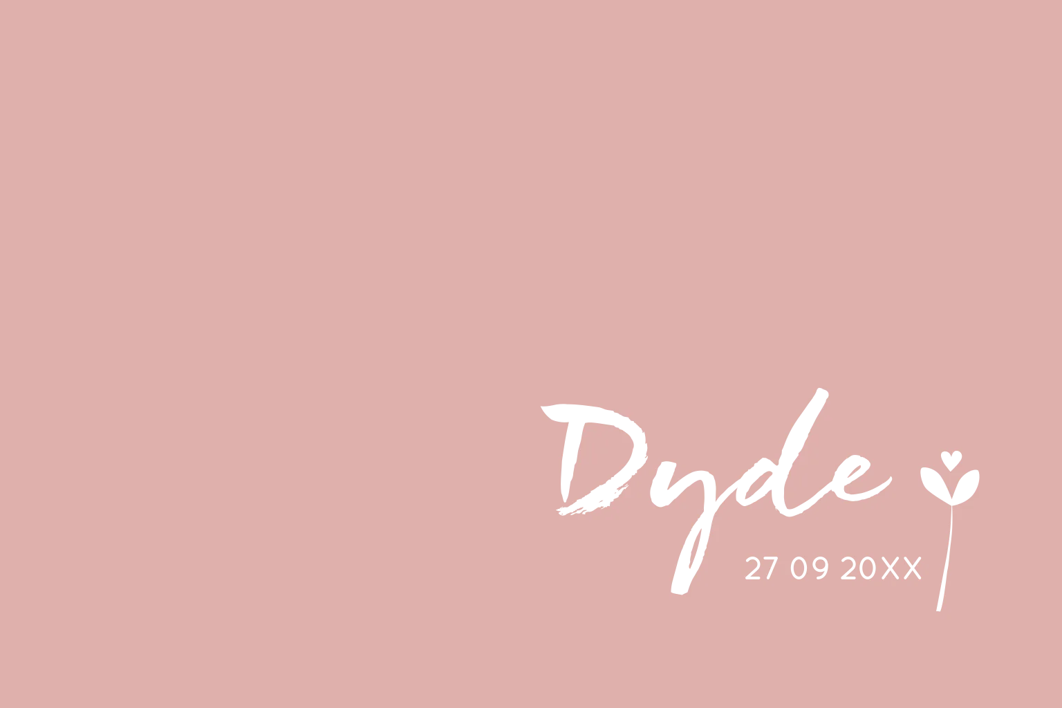 Mooie minimalistische geboortekaart met goud foliedruk op beide zijden met roze achtergrond die je ook zelf kunt aan passen. Extra leuk bij deze kaart is om een los foto-kaartje bij te voegen met een koordje of clipje.