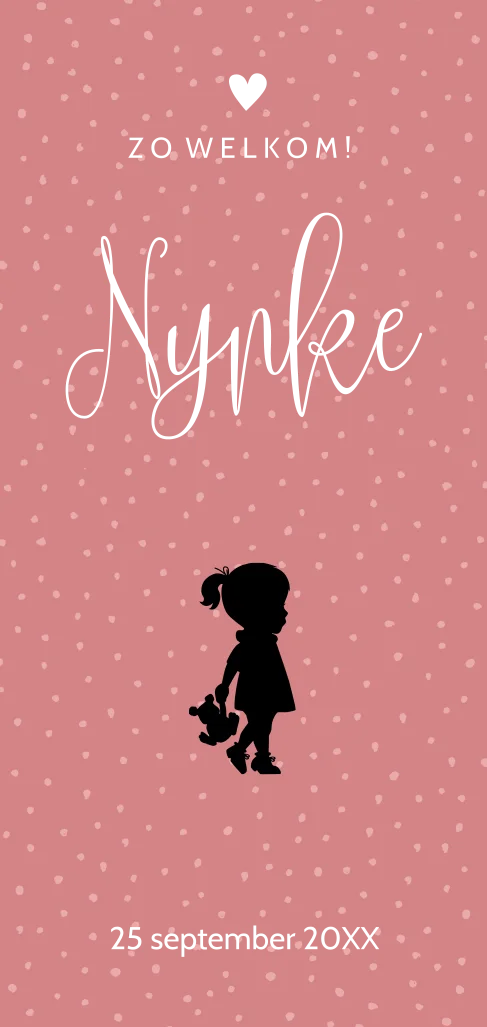 Lief staand geboortekaartje met goudfoliedruk, silhouet en stipjes. Personaliseer deze staande kaart naar eigen wens. Wil je liever een ander formaat, laat het ons weten!