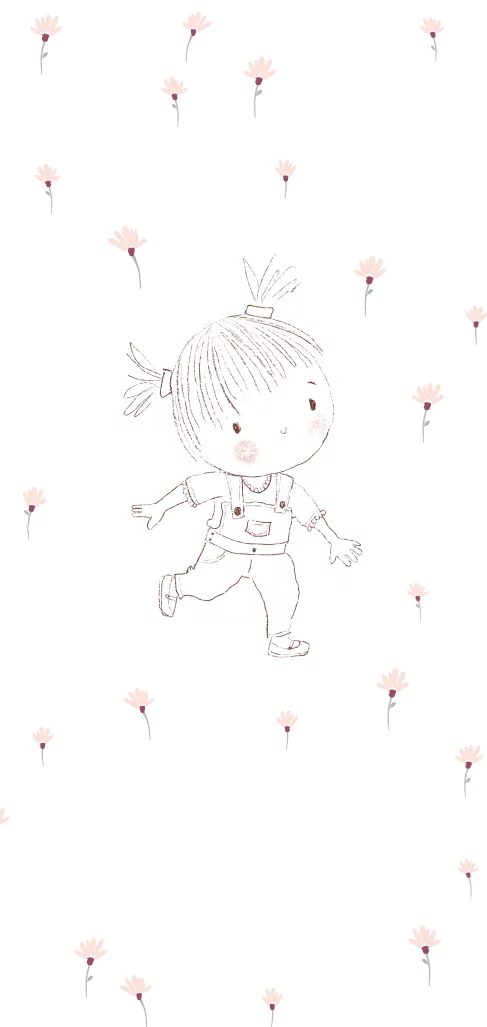 Mooie geboortekaart met kleine getekende bloemetjes en de naam in roséfolie. Personaliseer deze kaart door de teksten aan te passen.