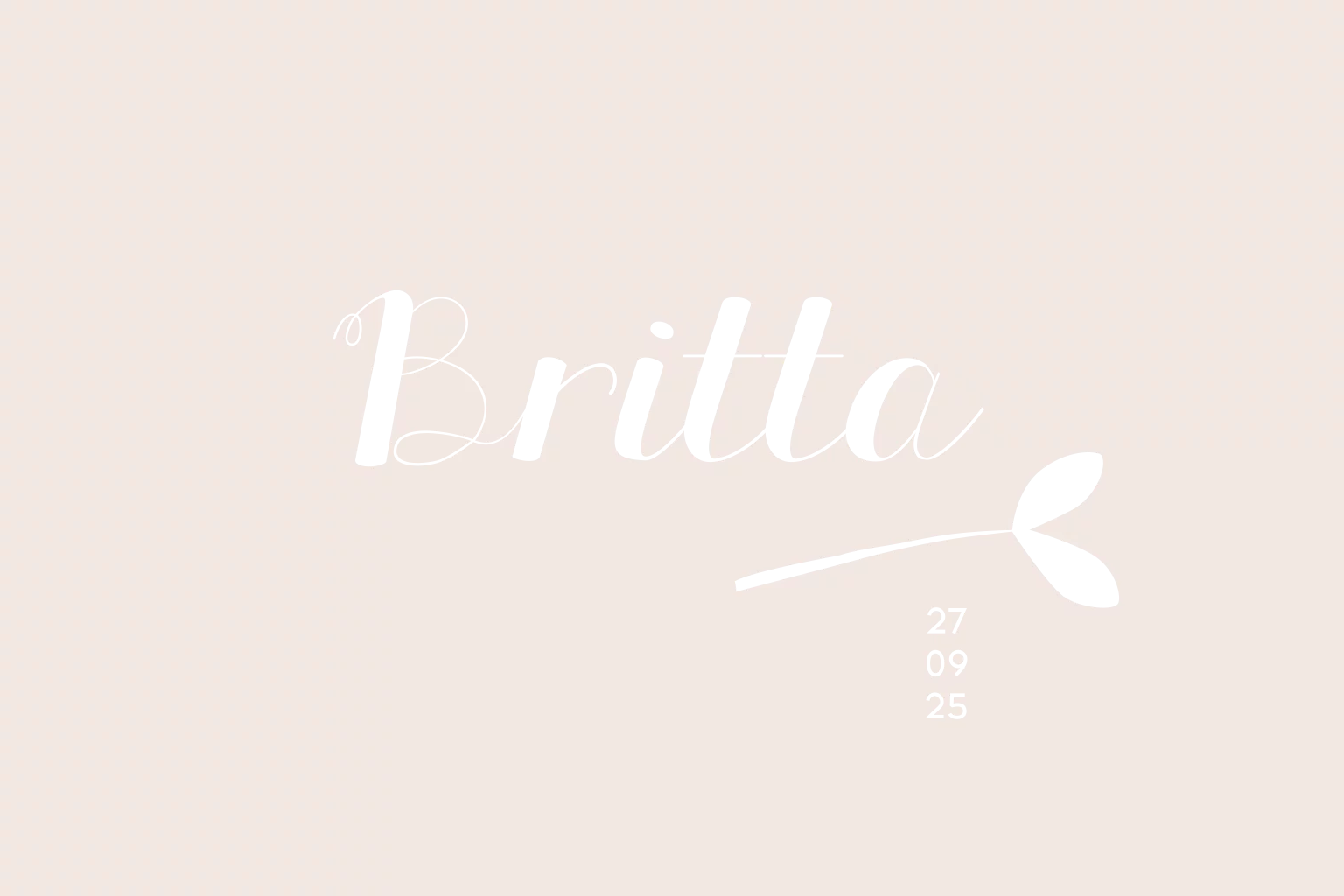 Lief minimalistisch geboortekaartje met naam en takje in roséfolie. Pas zelf de kleuren en teksten aan of zet om in goudfolie, zilverfolie of koperfolie.