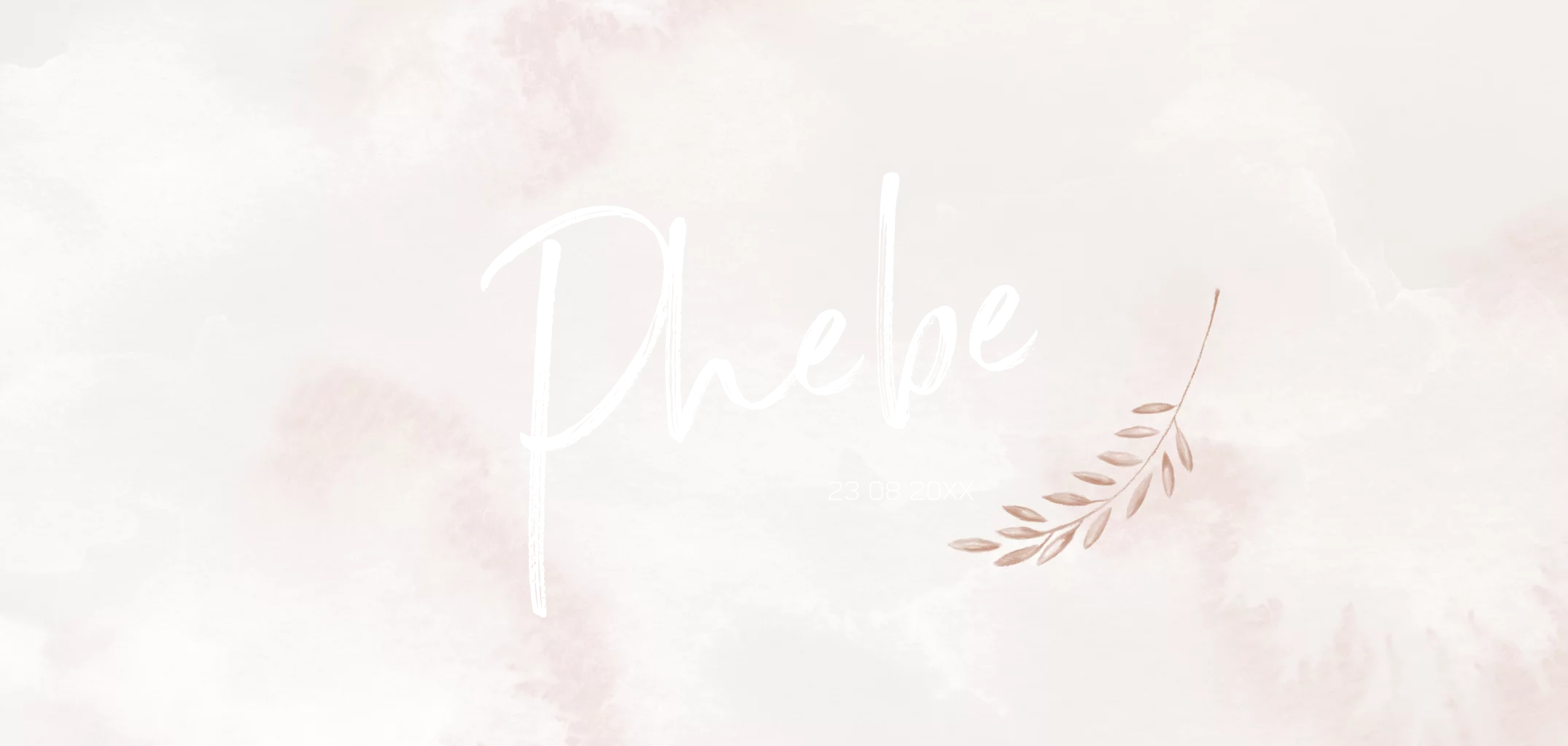 Mooie stijlvolle liggende geboortekaart met de naam en geboortedatum in roséfolie op een watercolor achtergrond en een getekend takje. Personaliseer deze kaart met ronde hoeken naar eigen idee.
