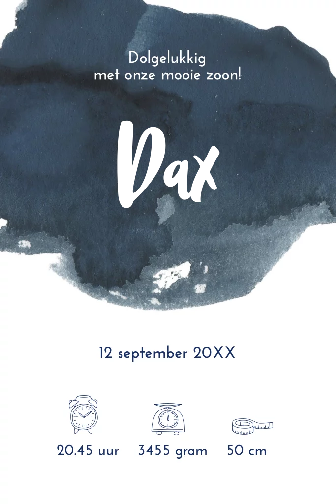 Mooie staande goudfolie geboortekaart voor een jongen met watercolor en de naam in goud folie.