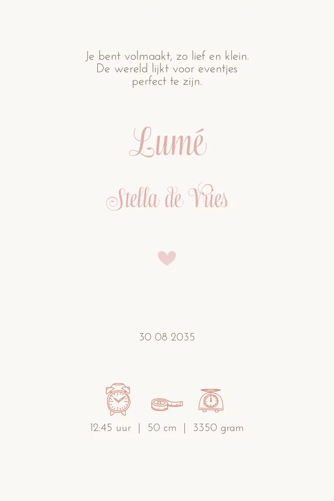 Prachtige staande meisjeskaart met de naam in foliedruk en getekende bloemetjes en een vogeltje in zachte kleuren en de teksten in foliedruk. Dit kaartje met een getekende maan, bloemen en takjes kun je zelf bewerken, verander de kleur van de achtergrond voor een andere uitstraling.