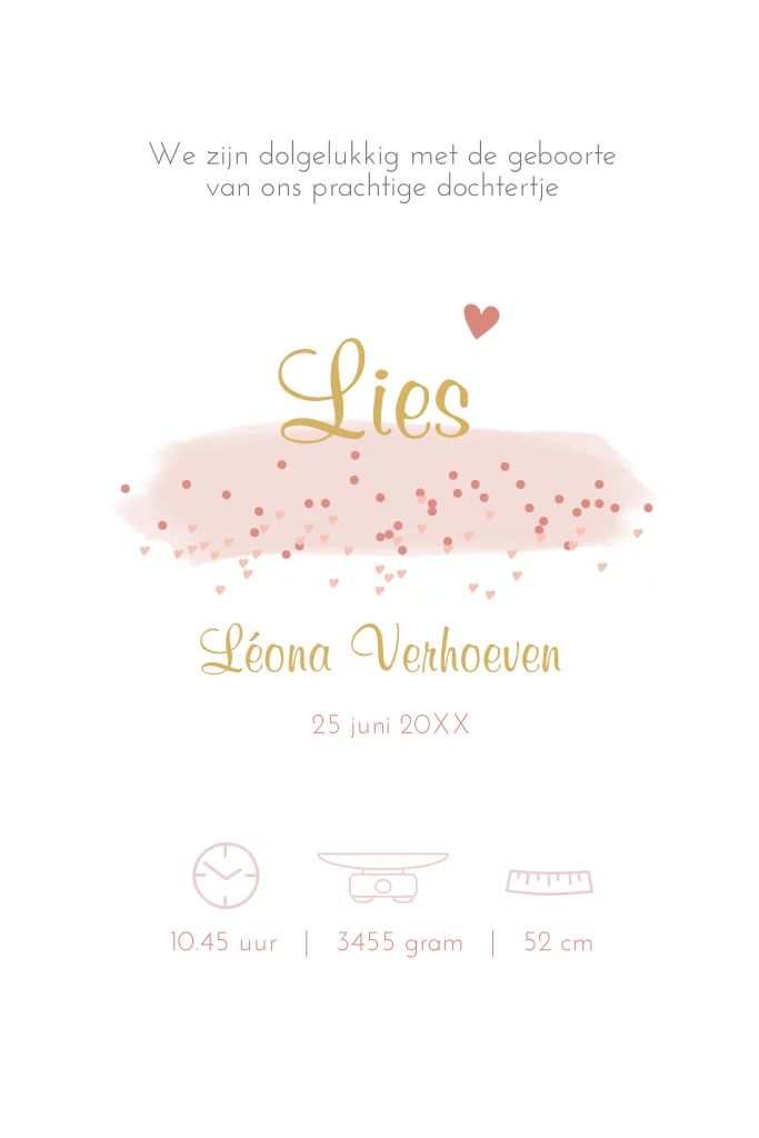 Geboortekaartje met folie, silhouet waterverf en confetti