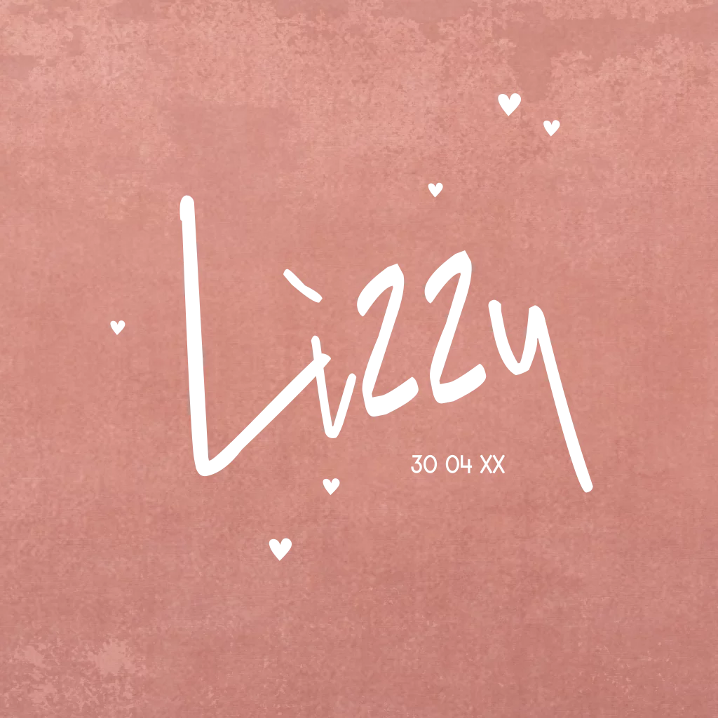 Folie geboortekaartje met hartjes & roest achtergrond (EF)