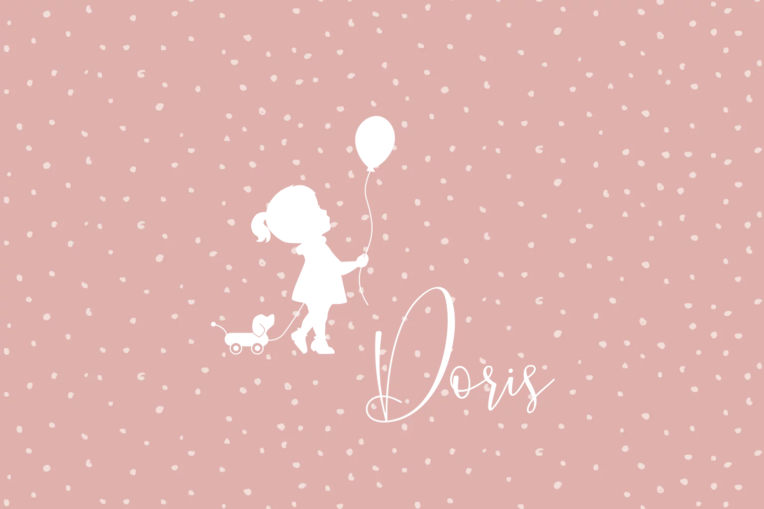 Schattig geboortekaartje met silhouet van een meisje met ballon in goudfolie. Pas zelf de kleuren en teksten aan of zet om in goudfolie, zilverfolie of roséfolie.