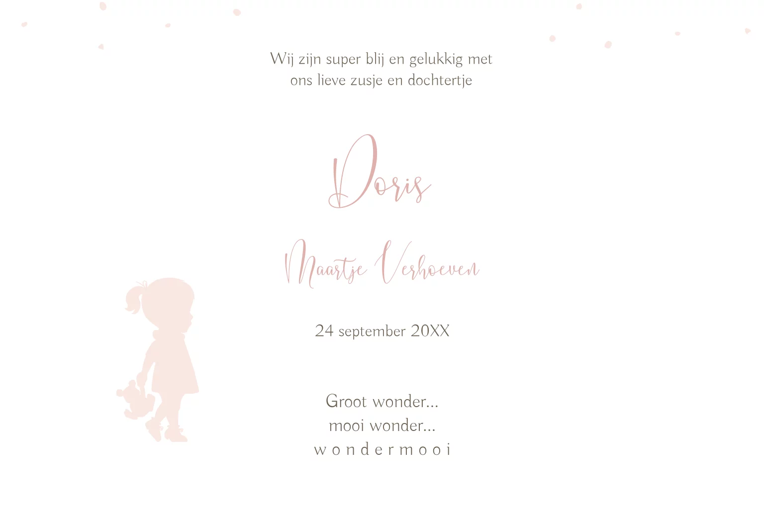 Lief folie geboortekaartje met stipjes en silhouet in goud