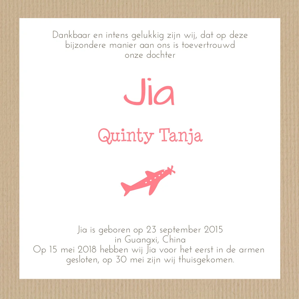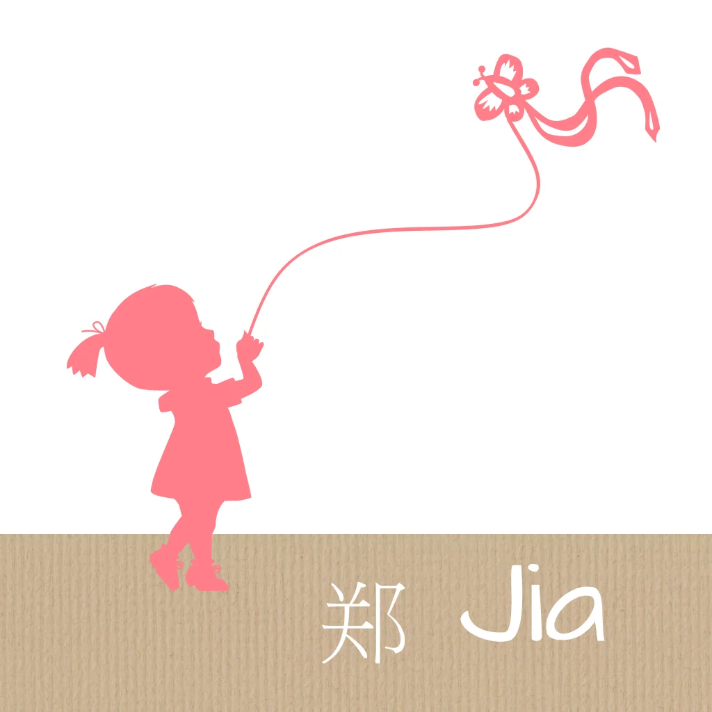 Mooi aankomstkaartje met kraft en chinese vlieger voor meisje. Originele silhouetten aankomstkaart voor jullie dochter met leuke details.