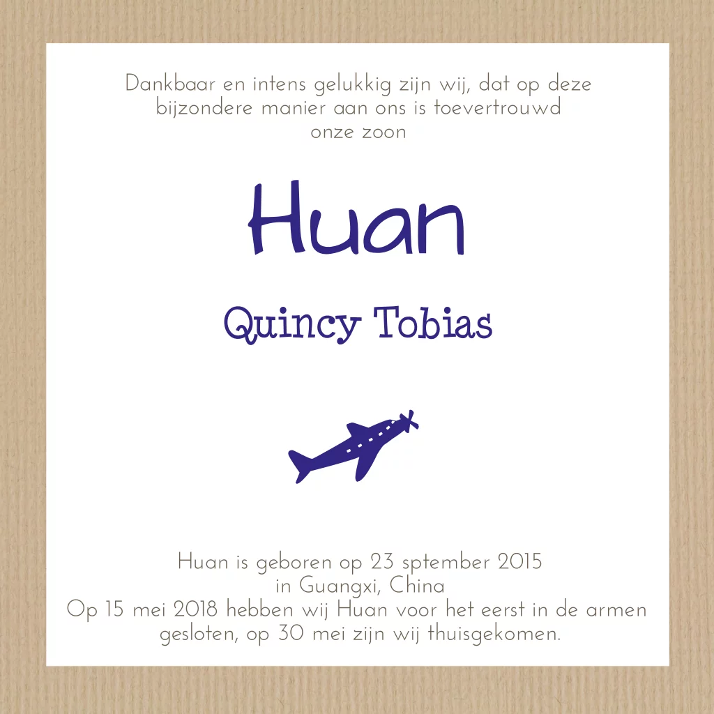 Mooi aankomstkaartje met kraft en chinese vlieger voor jongen. Originele silhouetten aankomstkaart voor jullie zoontje met leuke details.