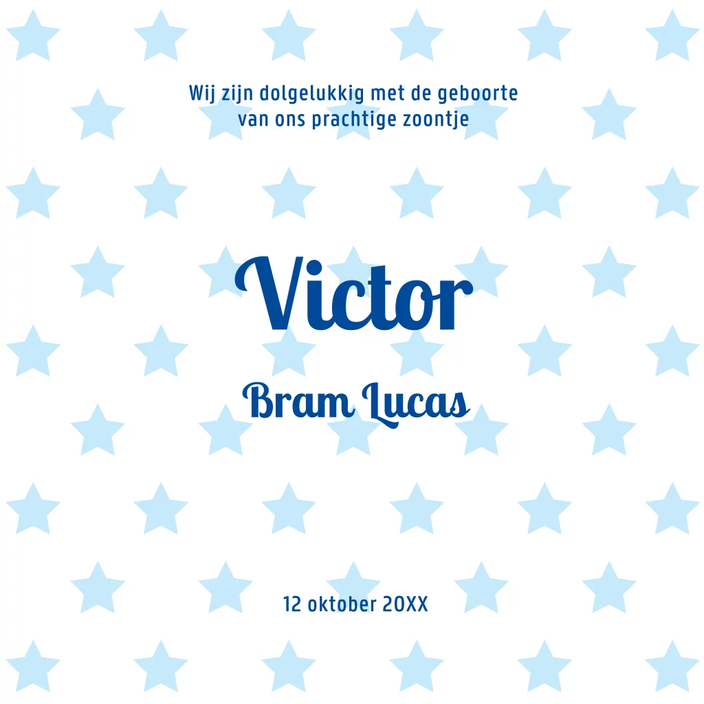 vrolijk geboortekaartje voor Victor met sterren en vrolijke auto