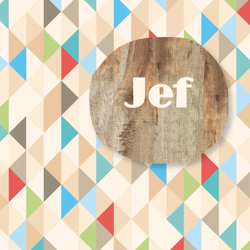 Modern design geboortekaartje voor hippe jongen met houten etiket en geometrisch, grafisch dessin. Uniek geboortekaartje om zelf te maken. Sloophout gecombineerd met grafisch dessin, een modern, hip geboortekaartje van JilleJille.nl