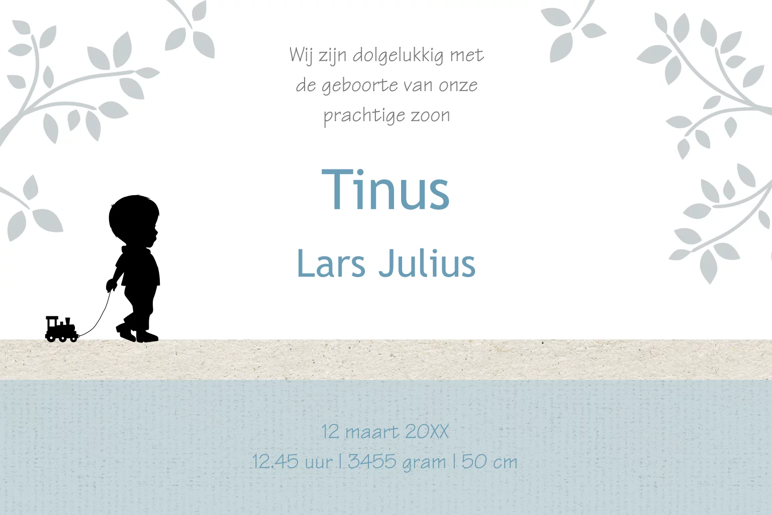 Trendy geboortekaartje met silhout jongen en broertjes op kraft