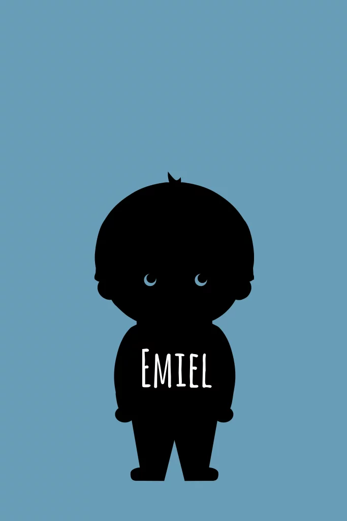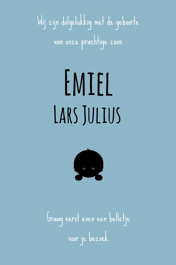 Mooi stoer geboortekaartje Emiel staand met popje silhouet