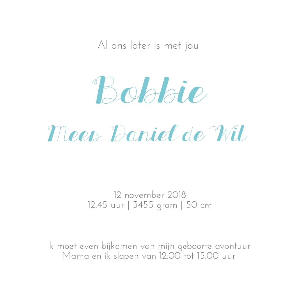 Hippe geboortekaart met lief beertje en vogeltje met elementen van planten, kleur zelf de achtergrond. Wow-kaartje!