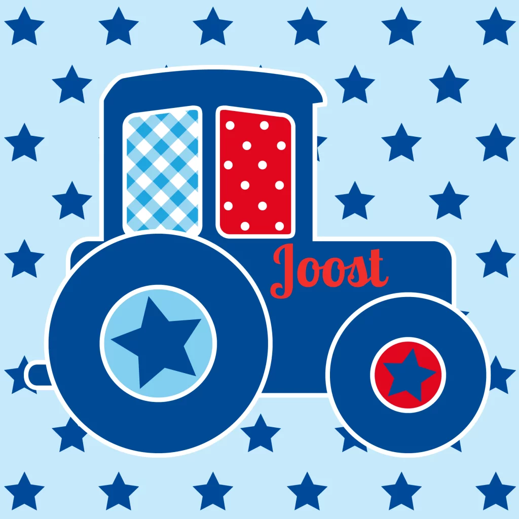 vrolijk geboortekaartje Joost met sterren en vrolijke tractor