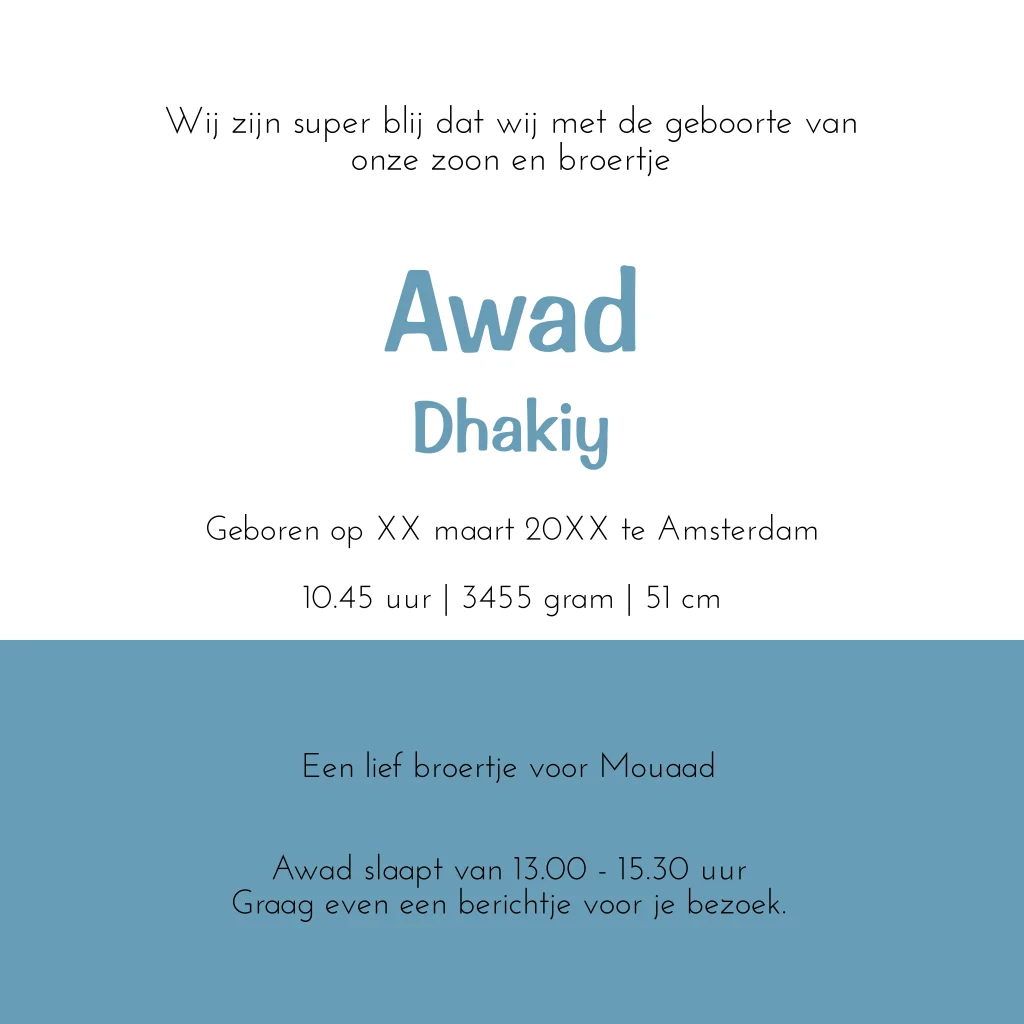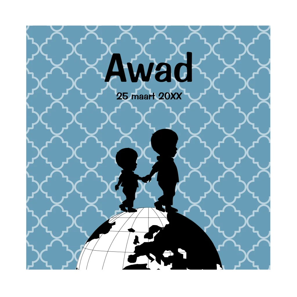 Hippe kaart met silhouet van lief jongetje met grote broer op de wereldbol. Islam, Marokkaans, Wow-kaartje! Proefdruk €1,- en verzenden is gratis.