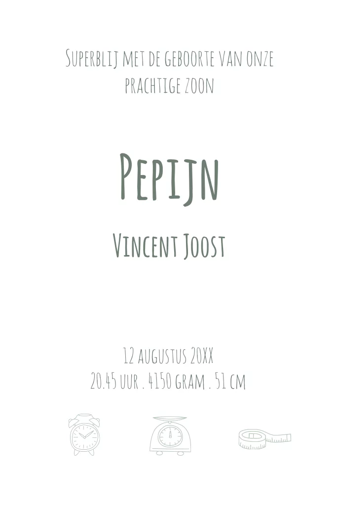 Lief geboortekaartje met schattig vogeltje en giraf voor jongen of meisje, kleur zelf de achtergrond.