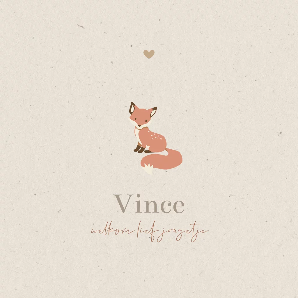 Schattig unisex geboortekaartje met een vosje en structuur achtergrond