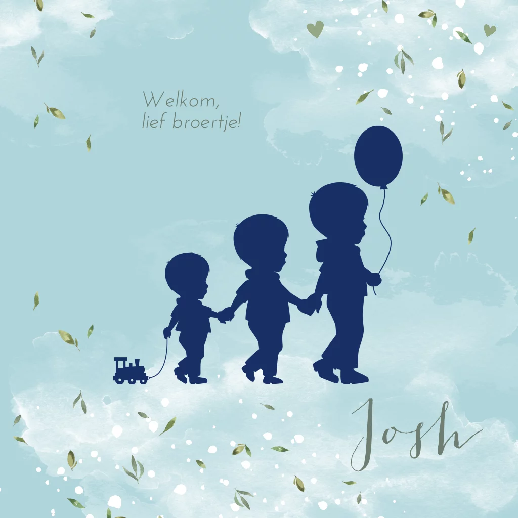 Silhouette geboortekaartje voor meerdere kinderen met waterverf en confetti van blaadjes. Maak het kaartje passend voor jouw gezinssituatie.