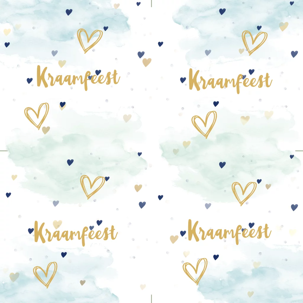 Modern design doopsuikerkaartje met hartjes confetti en waterverf ( 4x op kaart van 11, 13 of 15 cm) zelf los snijden en de kleuren aanpassen!