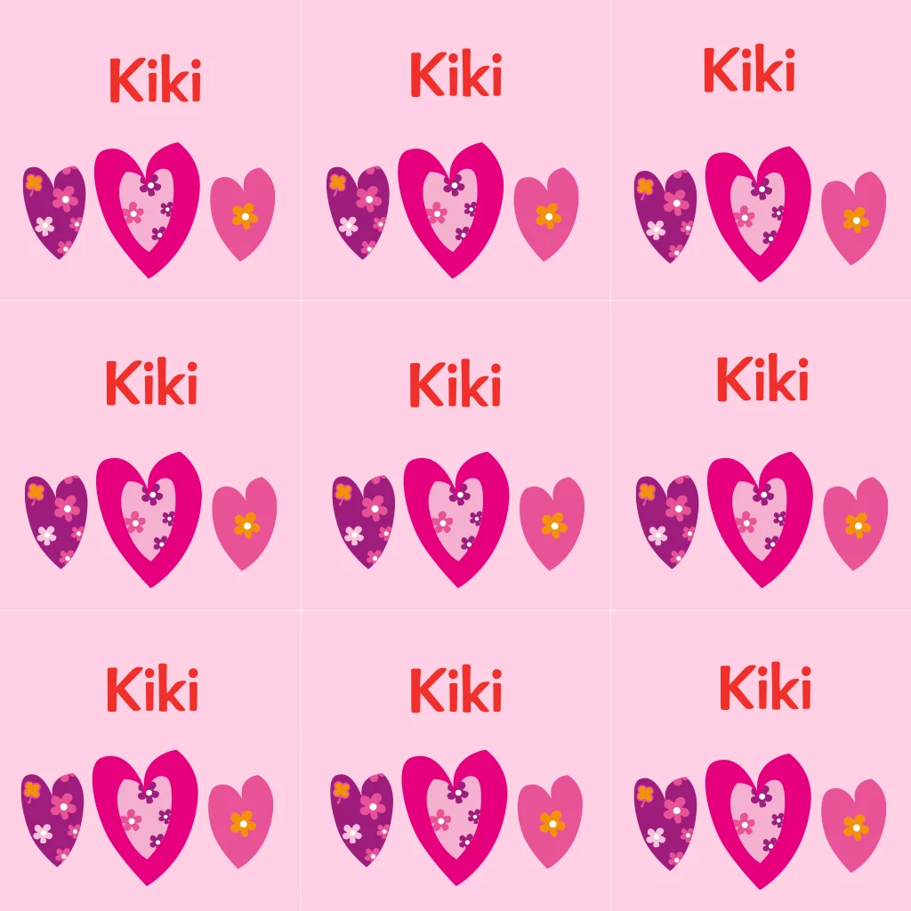 Modern design doopsuikerkaartje met hartjes en bloemetjes. ( 9x op 1 kaart van 15 cm) zelf los snijden!
