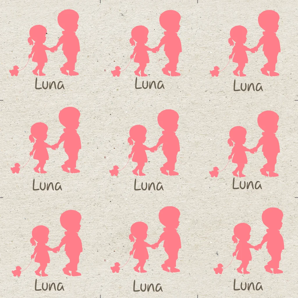 Modern design doopsuikerkaartje met silhouet van grote broer en zusje hand in hand. ( 9x op 1 kaart van 15 cm) zelf los snijden!