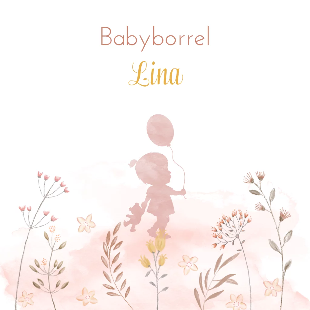 Kraamborrel kaartje silhouet meisje en mooie bloemen