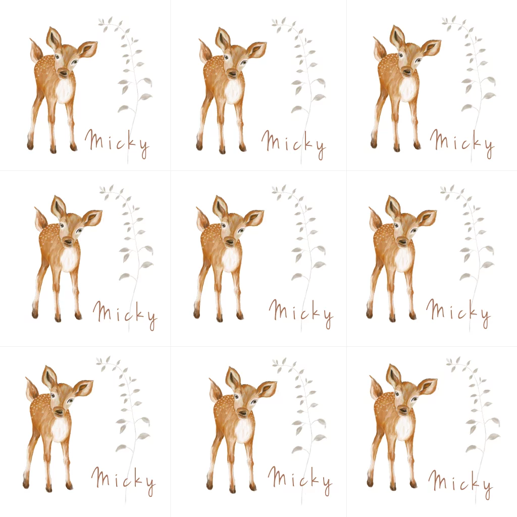Lief silhouet doopsuiker kaartje met takje en getekend hertje ( 9x op 1 kaart van 15 cm) zelf los snijden!