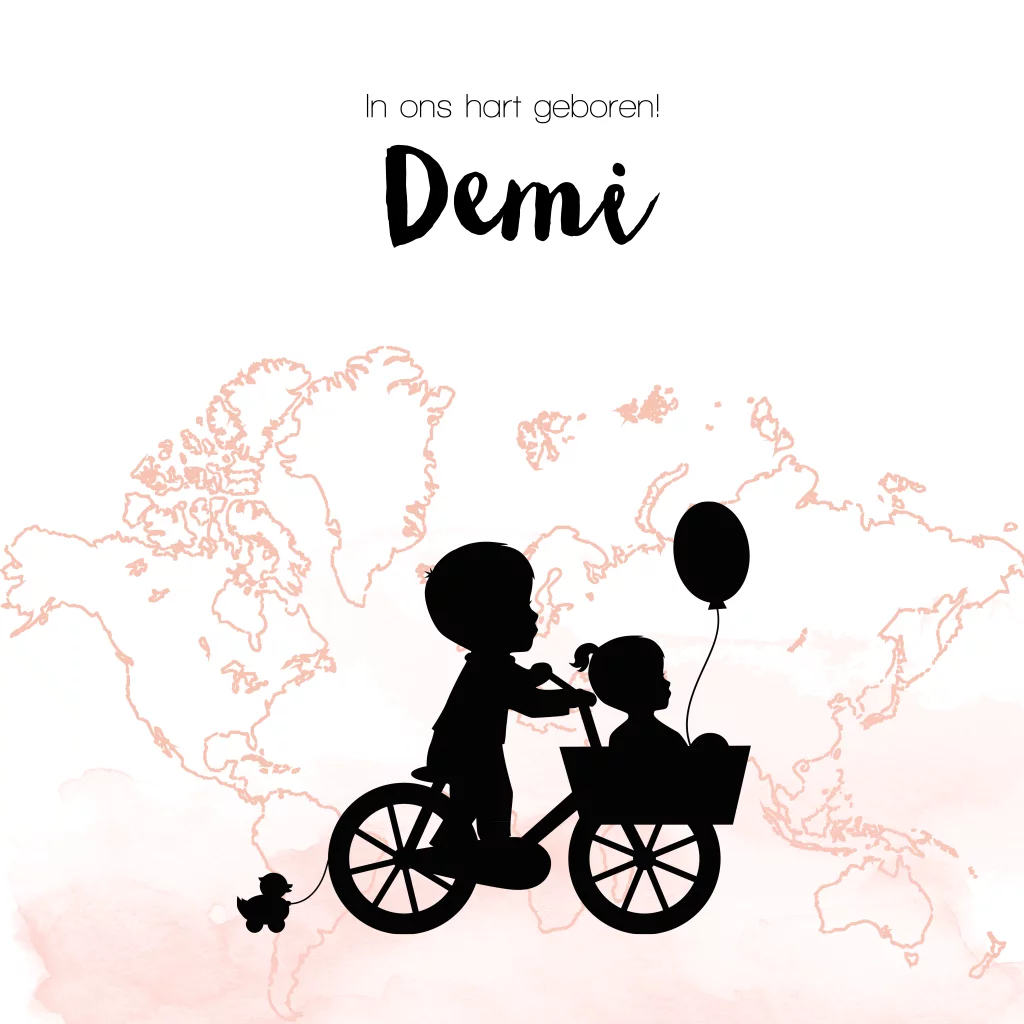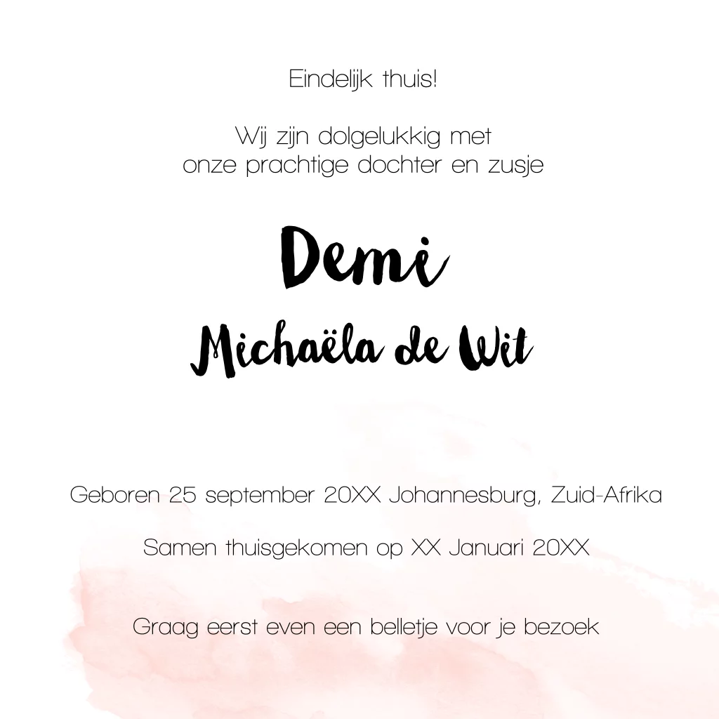 Hippe adoptiekaart voor dochtertje met lieve silhouet illustratie van lief meisje en waterverf.